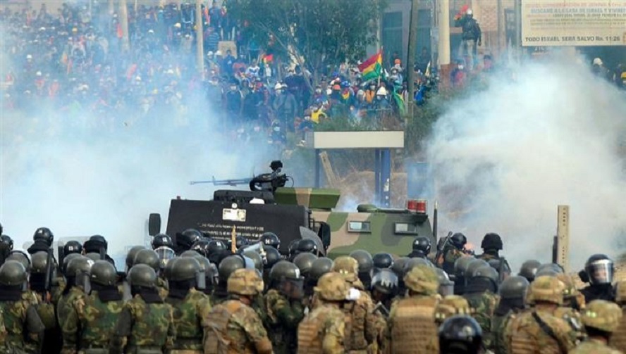 كوتشابامبا: اندلعت اشتباكات بين الآلاف من المزارعين وقوات الشرطة البوليفية، بالقرب من منطقة كوتشابامبا، احتجاجًا على رحيل الرئيس البوليفي السابق إيفو موراليس.