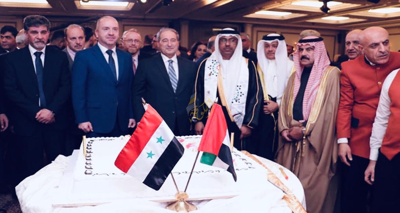من جهته ، أكد نائب وزير الخارجية السورية، فيصل المقداد، أن "سوريا والإمارات تتشاركان عناصر كثيرة من بينها العروبة وعمق لحمة الدم والانتماء والفرحة للإنجازات والانتصارات التي تتحقق في البلدين".