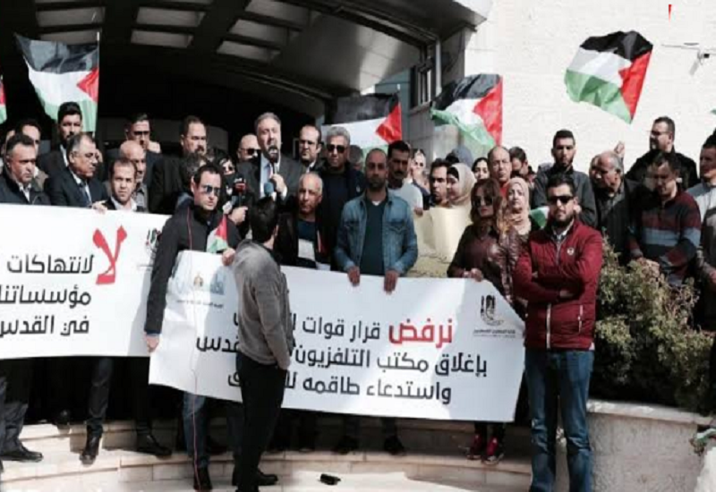 وأضاف، أن هذه الوقفة تأتي في ظل ما يتعرض له تلفزيون فلسطين وطواقمه من هجمة من قبل سلطات الاحتلال وإغلاق مكتبه، وهذا تصعيد خطير يشمل كل مرفقات المؤسسات الفلسطينية، ما يتطلب التضامن والالتفاف الشعبي معه ومع مؤسسات الدولة هناك.