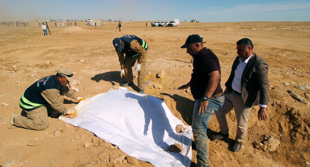 وأكدت مصادر عراقية، أن "المقبرة الجماعية المكتشفة تضم رفَاتُ أكثر من 150 جثة من بينهم رجال وأطفال، أعدموا رميا بالرصاص في منطقتي الرأس والصدر وهي موثوقة الأيدي ومعصوبة الأعين".
