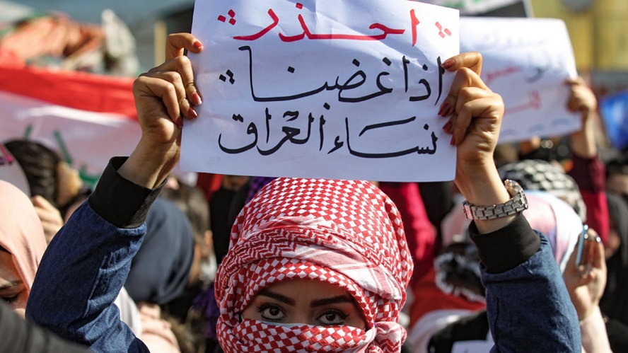 آلاف العراقيات يتظاهرن في بغداد تحت شعار "ثورة نسائية"