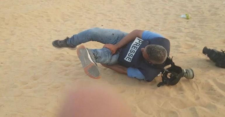 وبحسب وحدة الرصد الميداني في التجمع الإعلامي، فقد أصيب كلا من الصحفي علاء النملة برصاصة في ساقه، والصحفي محمود الجمل بشظية رصاصة في أذنه، خلال تغطيتهم مسيرات العودة شرقي رفح، والصحفي محمد العمريطي إثر سقوطه أثناء إطلاق قنابل الغاز من الطائرة، ما يرفع عدد الصحفيين الجرحى منذ انطلاق مسيرات العودة إلى 234 جريحا بالإضافة الى استشهاد الصحفيين ياسر مرتجى وأحمد أبو حسين.