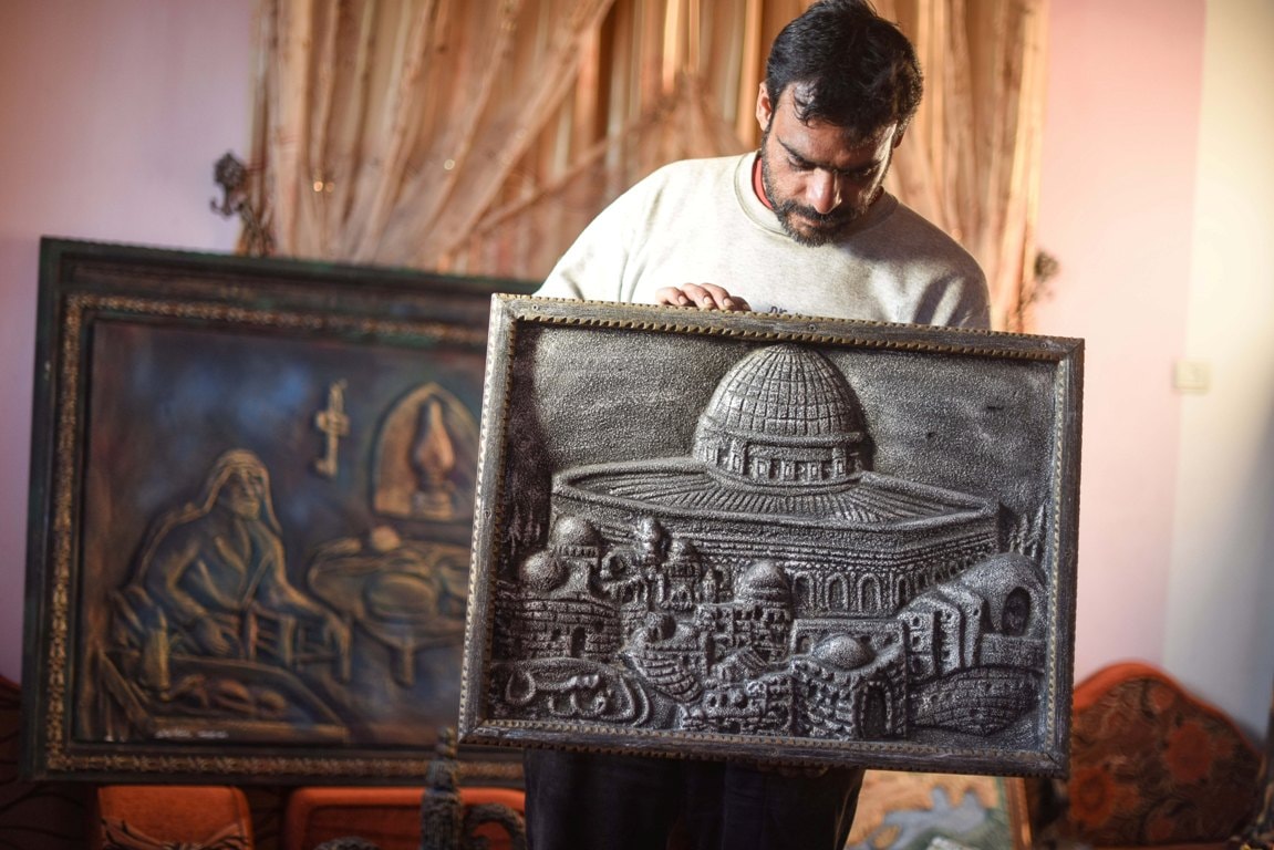 غزة: استطاع المواطن رمضان بشير (40 عامًا) من مدينة خانيونس جنوبي قطاع غزة، صناعة نحو 50 لوحة ومجسمًا فنيًا بشكل متقن، مستغلا المواد المستخدمة (الخردة)، التي يُفترض أن تكون في سلة المهملات.