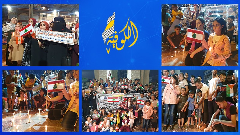 ورفع المشاركون في المسيرة، الشموع والعلم الفلسطيني واللبناني والشعارات التضامنية.