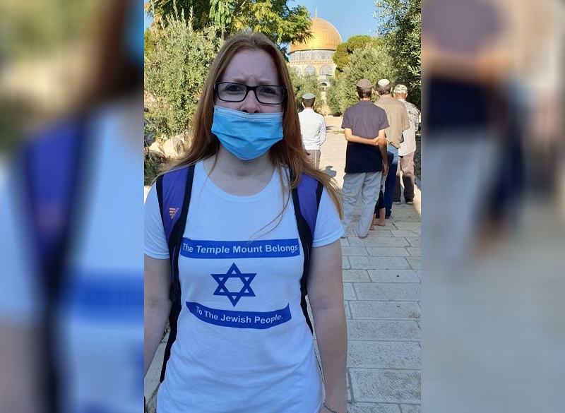 وخلال الاقتحام، ارتدت متطرفة مما تسمى "جماعة طلاب لأجل الهيكل" علم الاحتلال، وتجولت في باحات الأقصى، وهي تردد عبارات "الهيكل" وتزعم أن "الأقصى ملك لشعب إسرائيل".