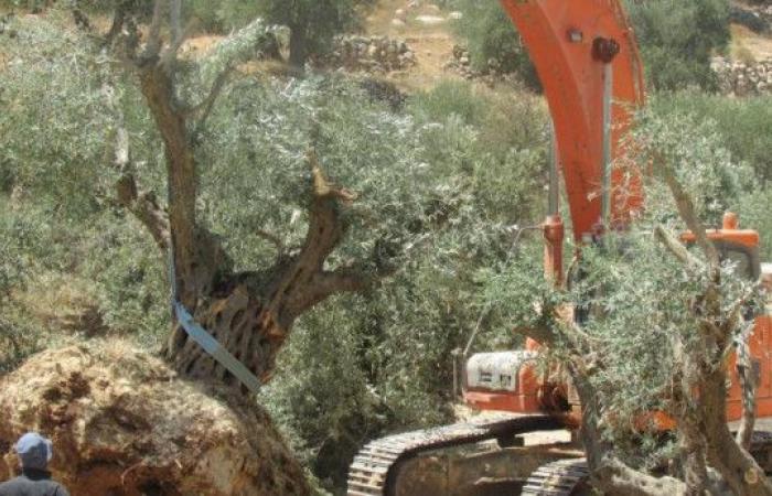 رام الله: الاحتلال يقتلع 22 شجرة زيتون في رأس كركر