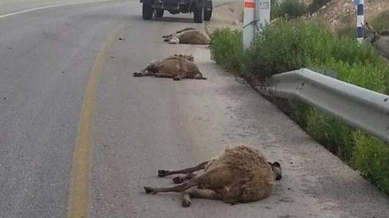 نفوق 10 أغنام عقب دهسها من قبل مستوطن جنوب الخليل