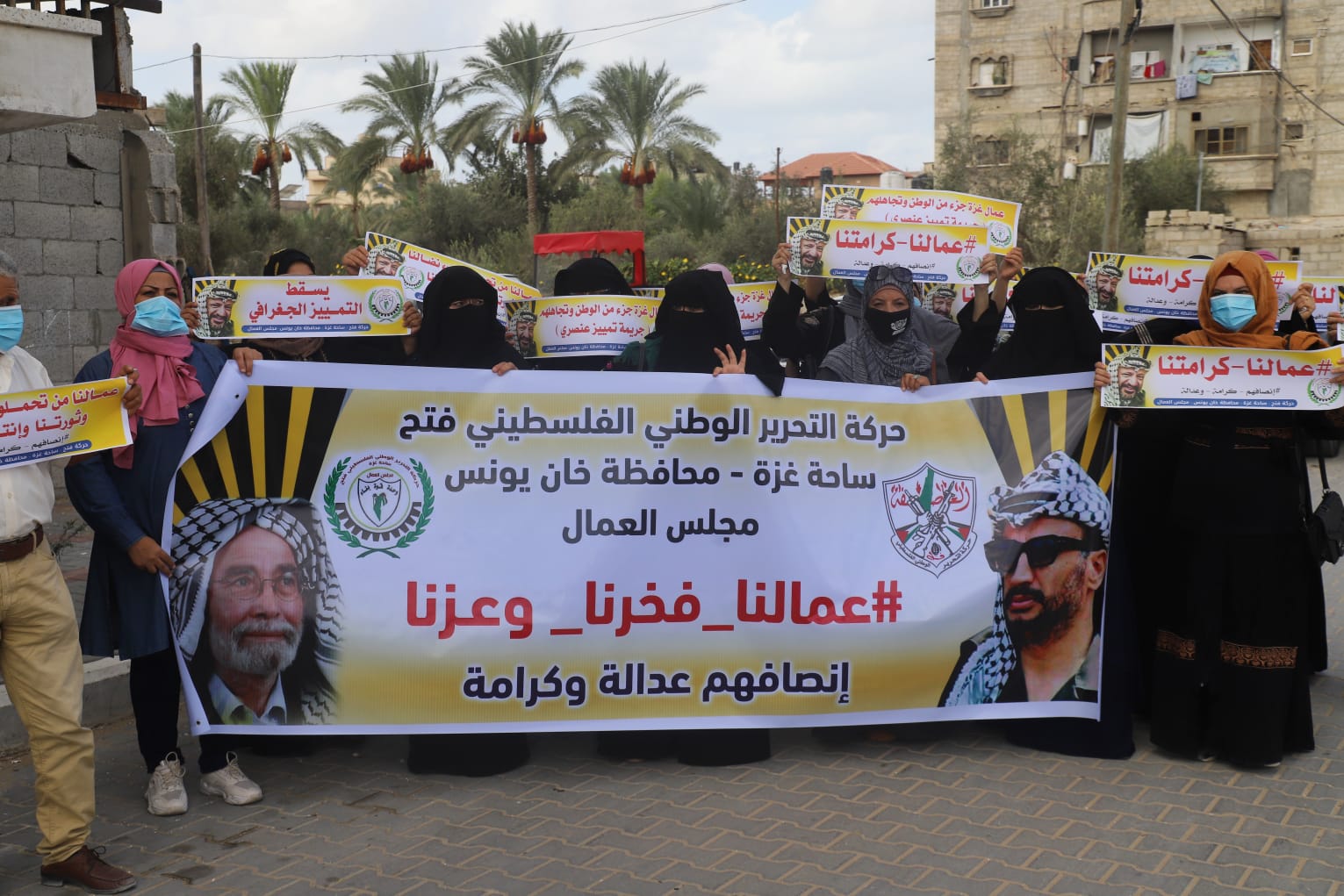 بالصور|| وقفة احتجاجية لمجلس العمال في خانيونس رفضا للتمييز الجغرافي