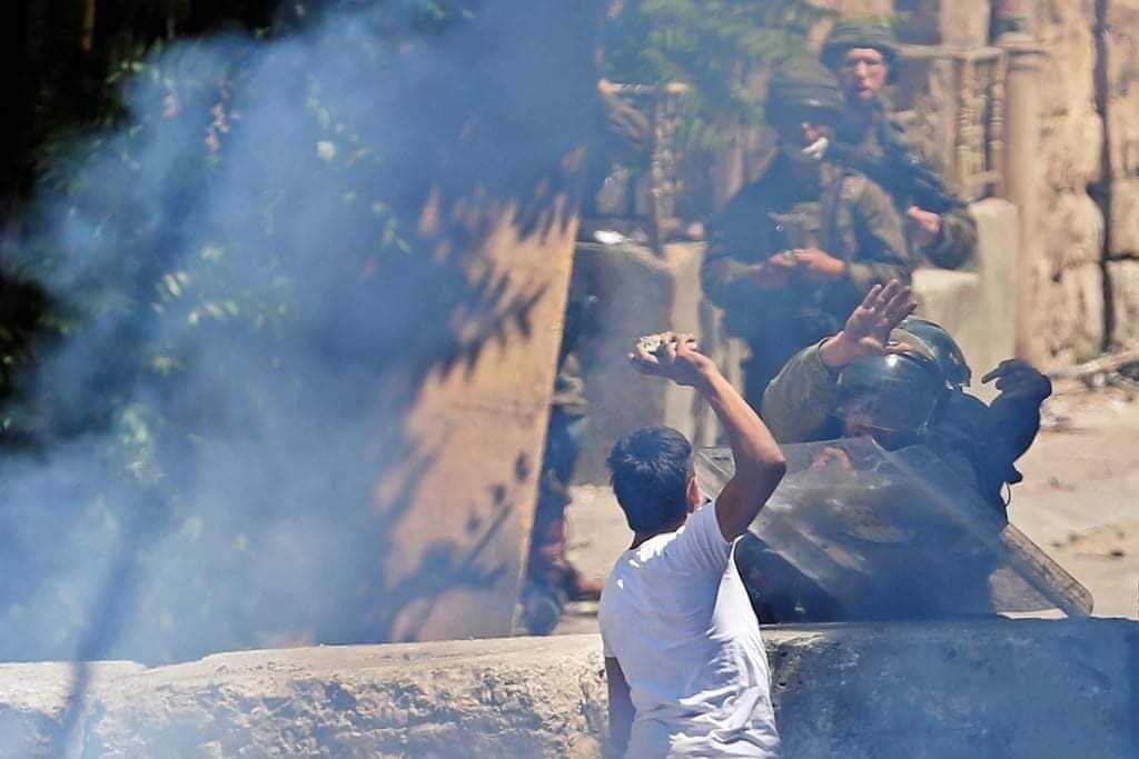 الخليل: أصيب عدد من المواطنين بالاختناق، اليوم الجمعة، خلال مواجهات مع قوات الاحتلال الإسرائيلي، في منطقة باب الزاوية وسط مدينة الخليل.