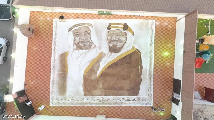 وتضمنت لوحة عهود عبد الله المالكي المقيمة في مدينة جدة على ساحل البحر الأحمر، رسوما لـ 7 شخصيات سعودية وإماراتية من بينهم الملك الراحل عبد العزيز آل سعود ومؤسس الإمارات الشيخ زايد آل نهيان.