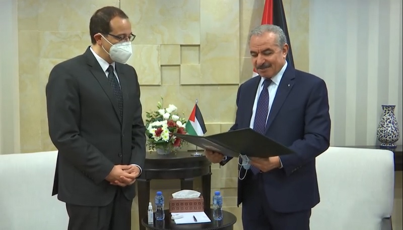 رام الله: قلد رئيس الحكومة الفلسطينية الدكتور محمد اشتية، اليوم السبت، السفير المصري لدى فلسطين عصام الدين عاشور وسام نجمة القدس.