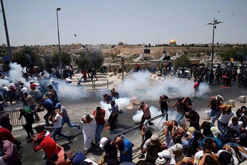 واستهدفت قوات الاحتلال مسيرة سلمية انطلقت نحو حاجز قلنديا العسكري، وأمطرت المشاركين بقنابل الغاز السام والرصاص الحي والمعدني.