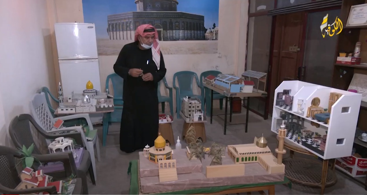 وأوضح الحاج، أنه بدأ في صناعة مجسمات كرتونية بأشكال مختلفة من ألواح الكرتون التالفة في منزله، إذ أنه قام بصناعة مجسم لمدينة القدس والمسجد الأقصى، لإظهار المعالم الدينية التي لم يشاهدها المواطنون من قبل وللتعرف عليها، ألا وهي مسجد قبة الصخرة، المسجد الأقصى، منصة الوضوء، مسجد عمر.