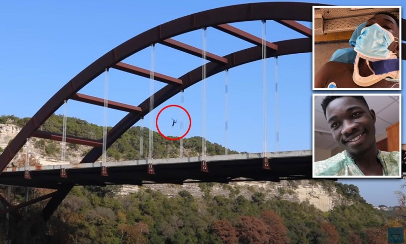 وظهر فومبا في فيديو وثّق جسر بيني باركر في ولاية تكساس الأمريكية، ثمّ بدا مستلقياً على الارض يحاول الإمساك برأسه ليتبيّن أنّه تعرّض لكسور في جمجمته ولنزيفٍ خفيفٍ.
