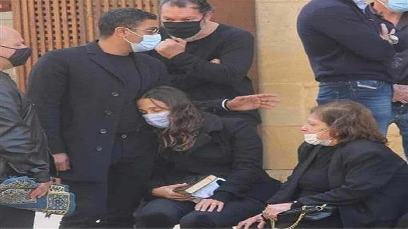 آسر ياسين يواسي زوجته فى جنازة والدتها