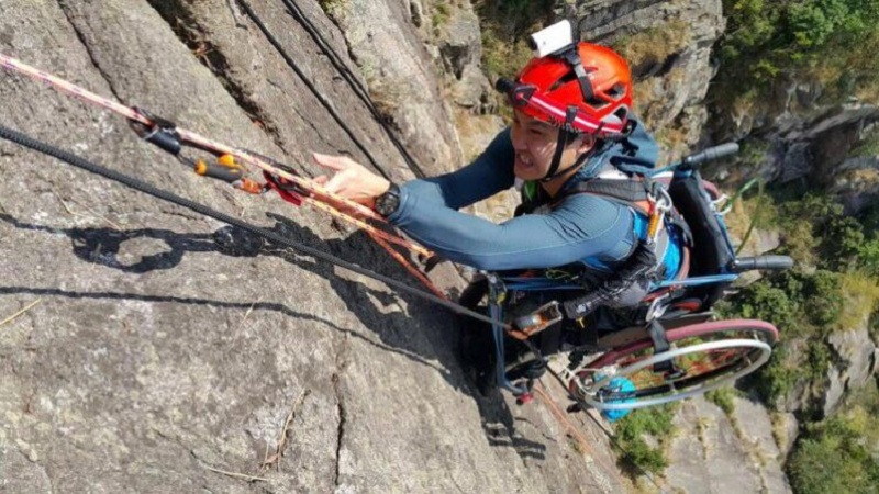 بكرسيه المتحرك.. معاق ينجح في تسلق 250 مترا